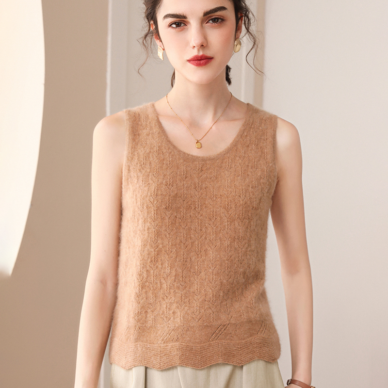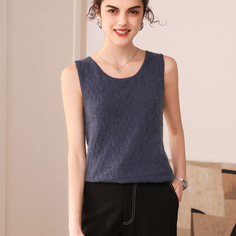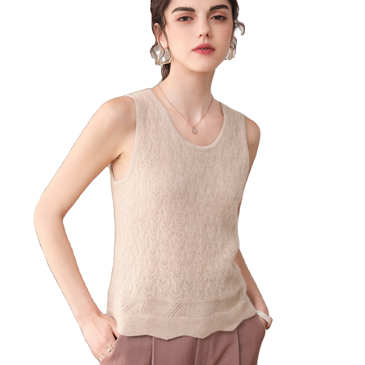 米岚甄选100纯山羊绒绞花背心纯色羊绒无袖打底衫女圆领山羊马甲