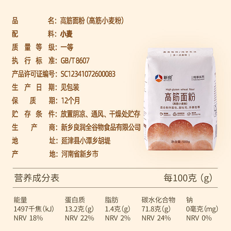 新良纯享高筋面包粉500g*2袋日式吐司面包家用烘焙小麦面粉原料