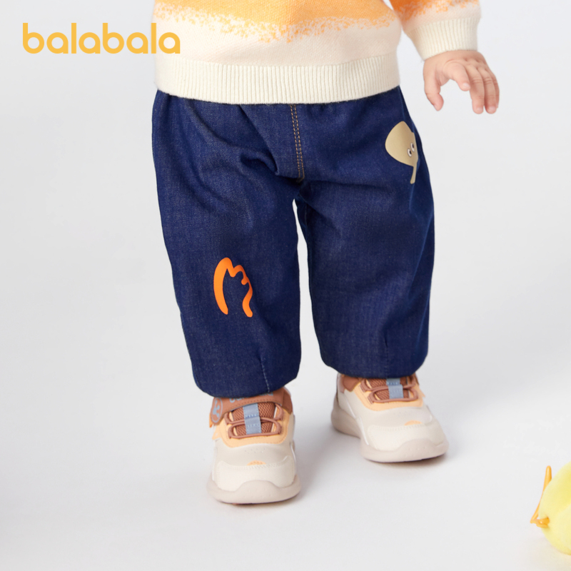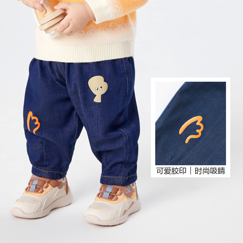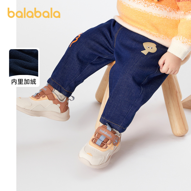 巴拉巴拉宝宝裤子男童长裤加绒裤冬装牛仔休闲裤保暖时尚洋气潮酷