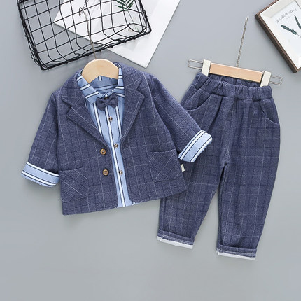 儿童西服秋冬季小童加厚西装三件套男宝宝英伦风周岁花童礼服套装
