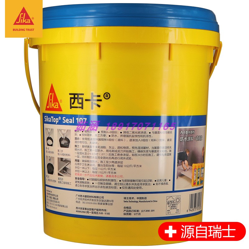 瑞士西卡防水涂料经典 防水灰浆107卫生间 阳台 防水涂料胶 15kg