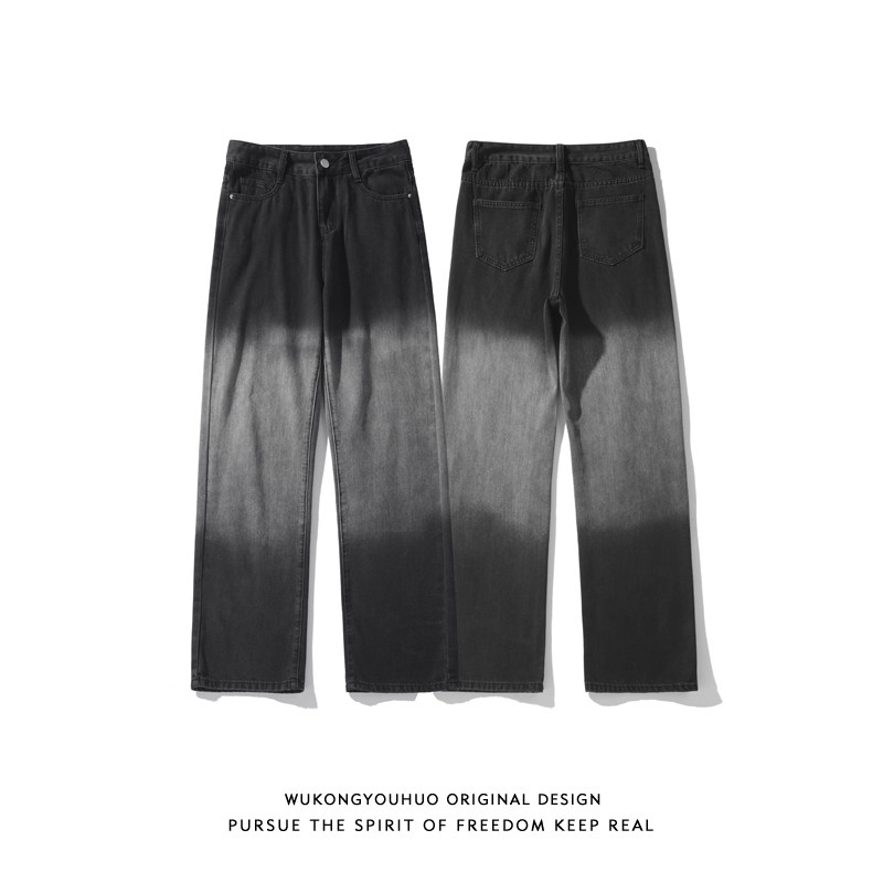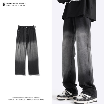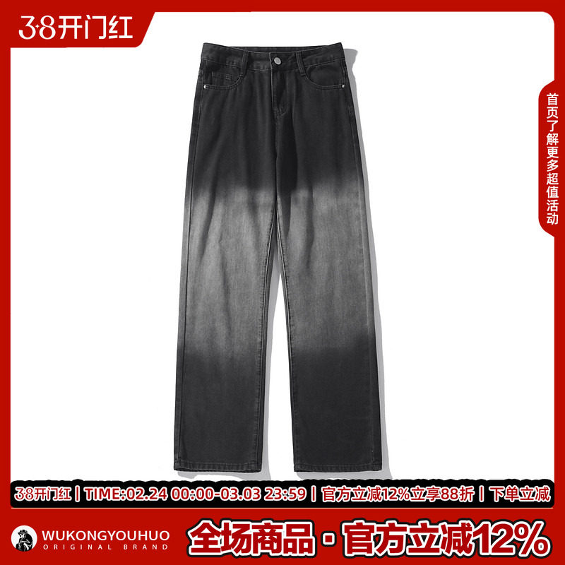 悟空有货美式潮牌渐变做旧水洗牛仔裤男ins宽松潮流百搭休闲长裤