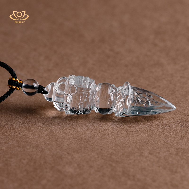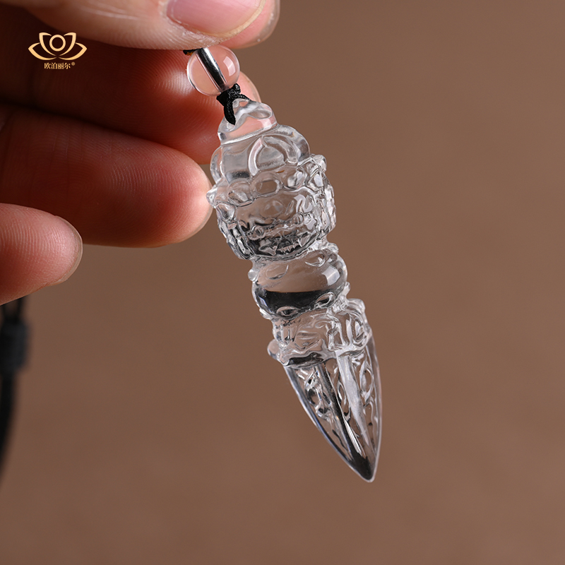 天然白水晶金刚杵吊坠男女款三面普巴降魔杵项链水晶挂件饰品礼物