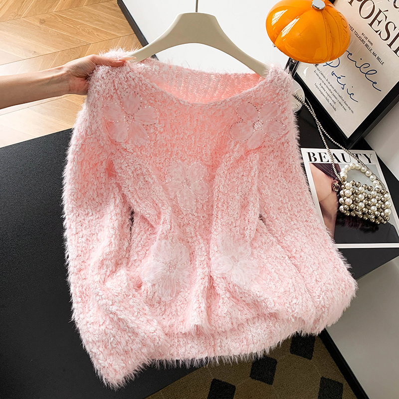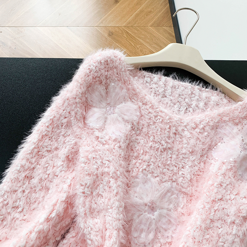加小码XXXS冬装女装小个子150cm显高甜美V领毛衣长袖甜美亮片花朵