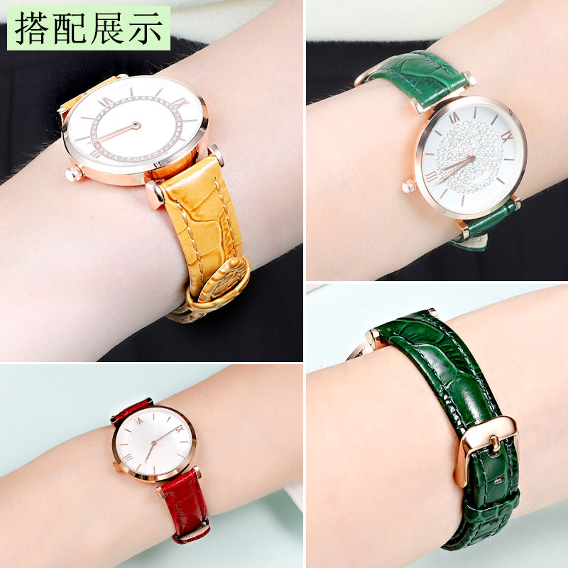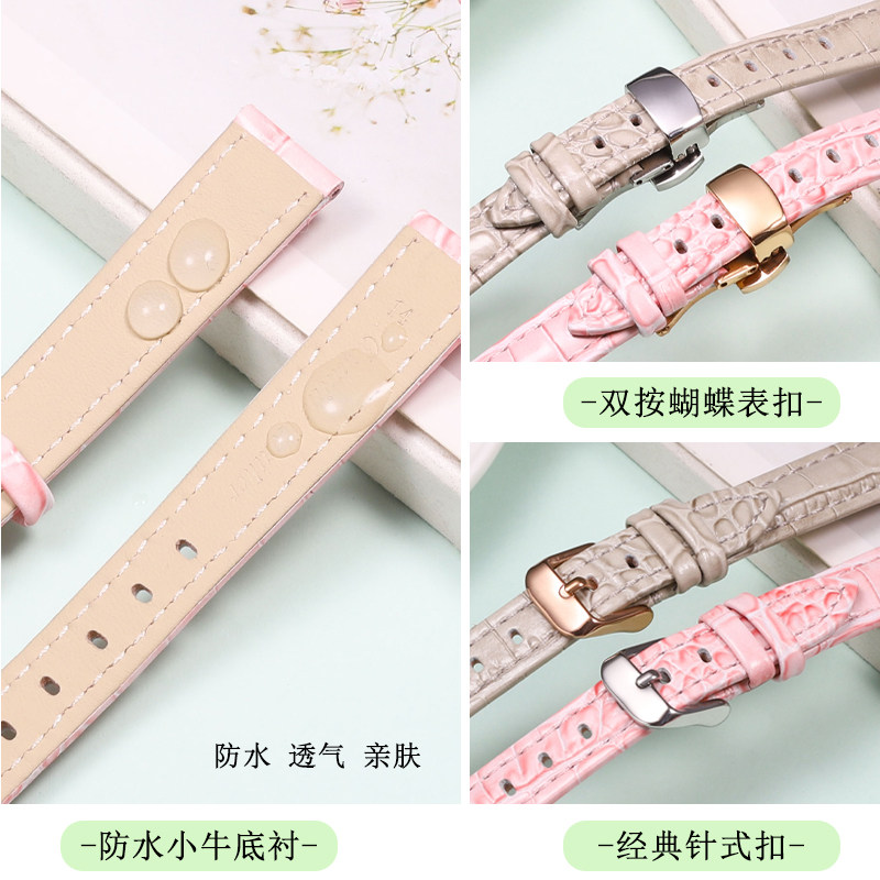 适配天梭1853真皮手表带女T050 T099杜鲁尔卡森牛皮红色白色表带