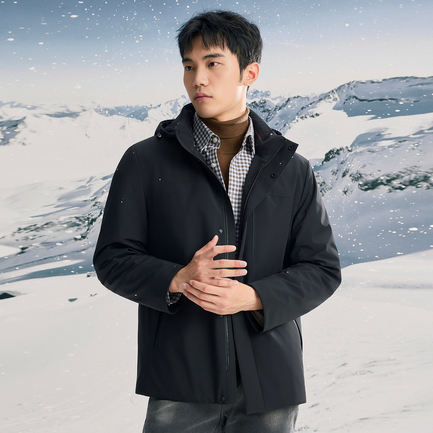 [高蓬鹅绒]乔顿连帽羽绒服25年冬季男士保暖外套可脱卸内胆羽绒服