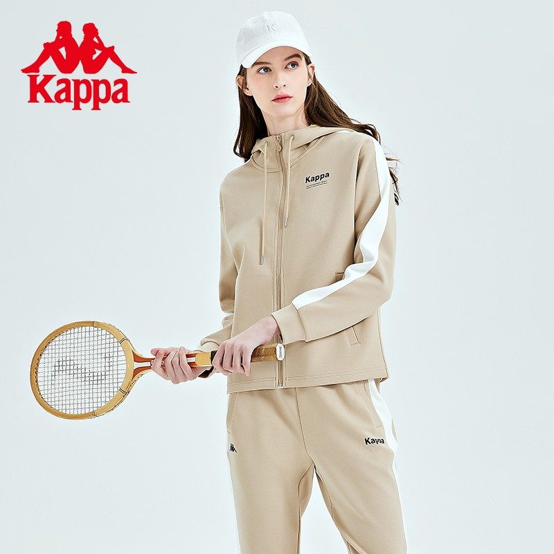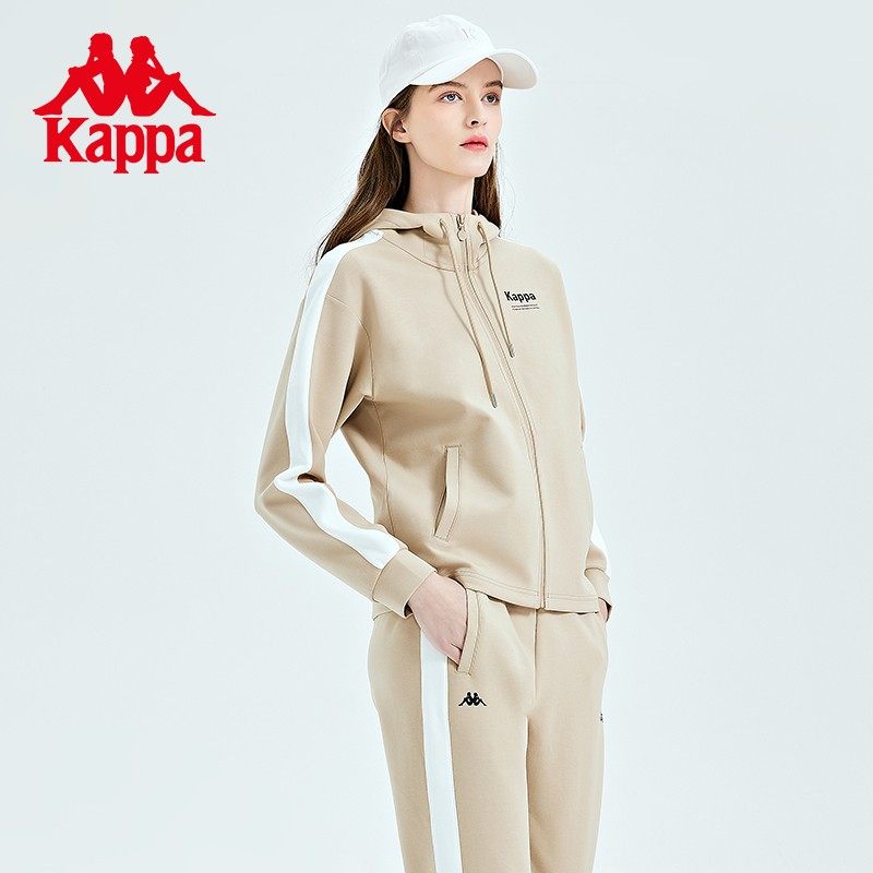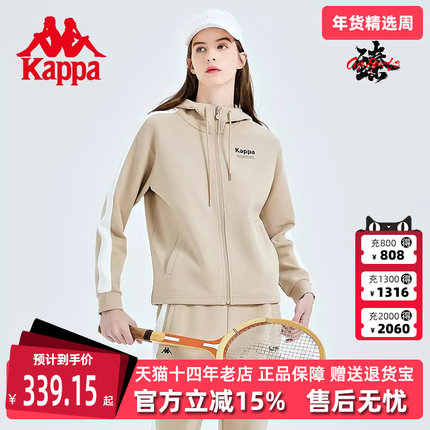 Kappa卡帕女式开身帽衫春季新款运动卫衣拼接休闲开衫外套