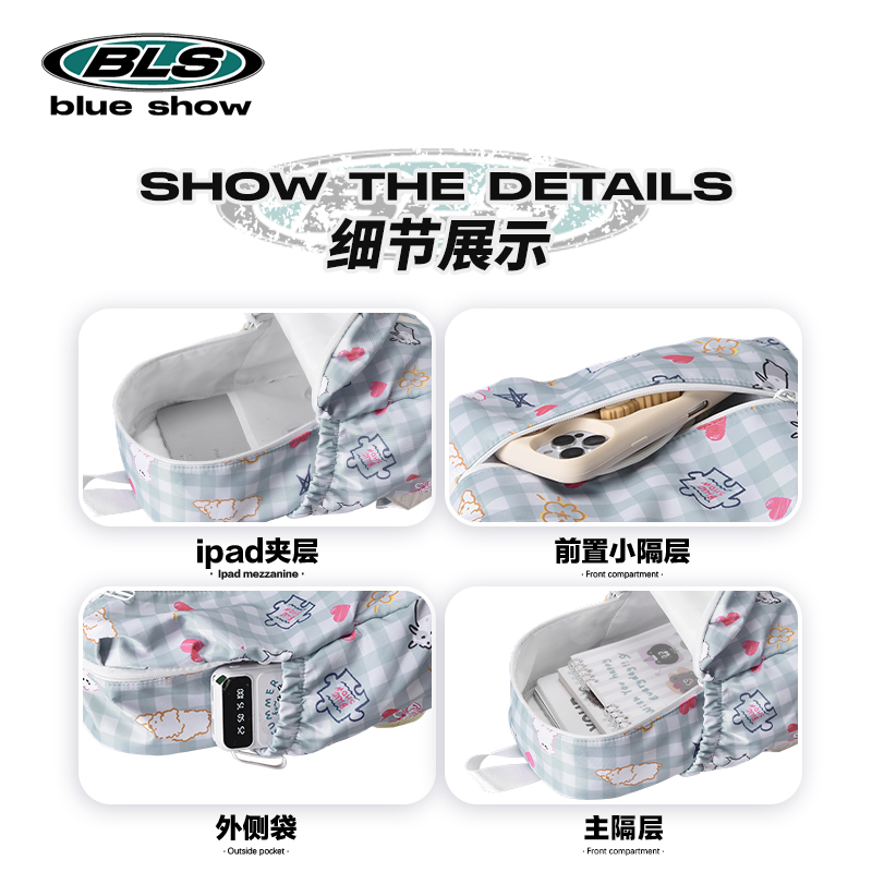 BLUE SHOW可爱大学生双肩包女初高中生上课书包新款小狗印花背包
