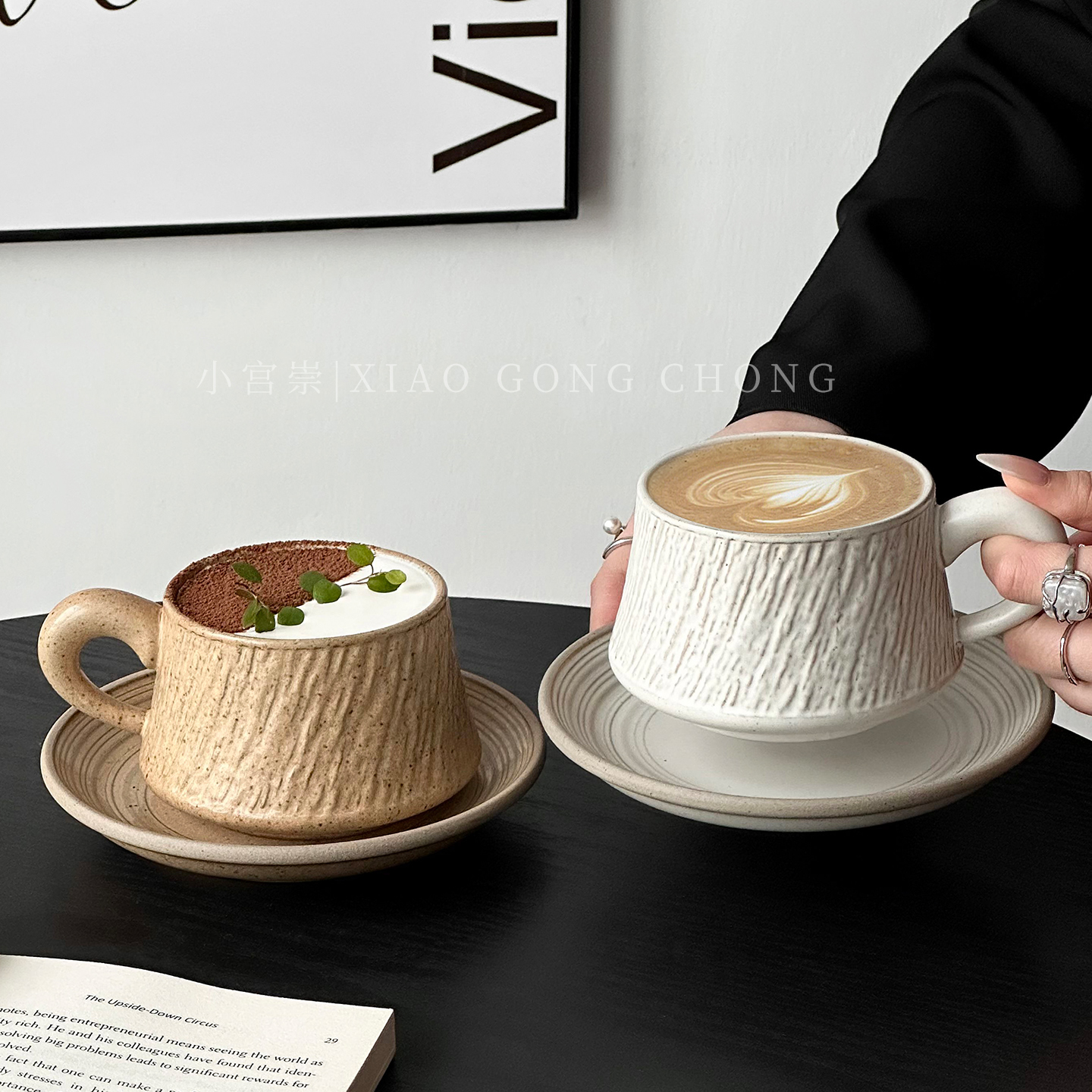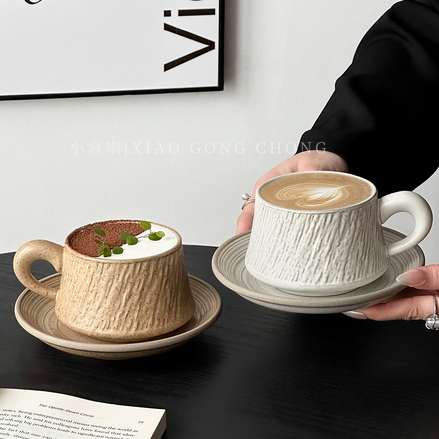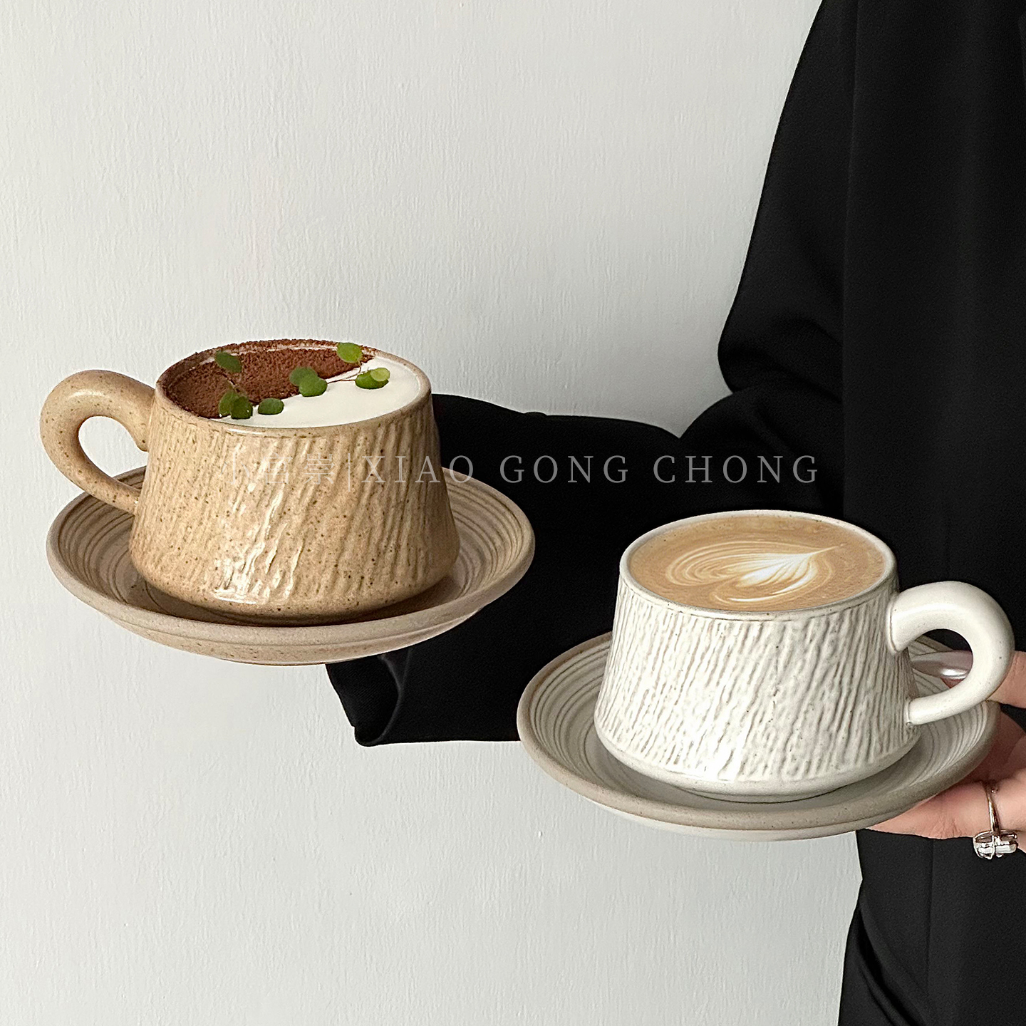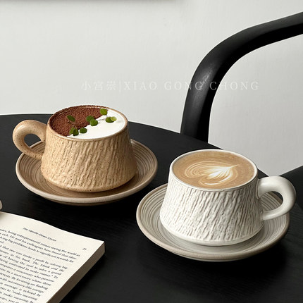 复古石纹陶瓷咖啡杯子高颜值创意拿铁杯拉花杯精致下午茶杯碟套装