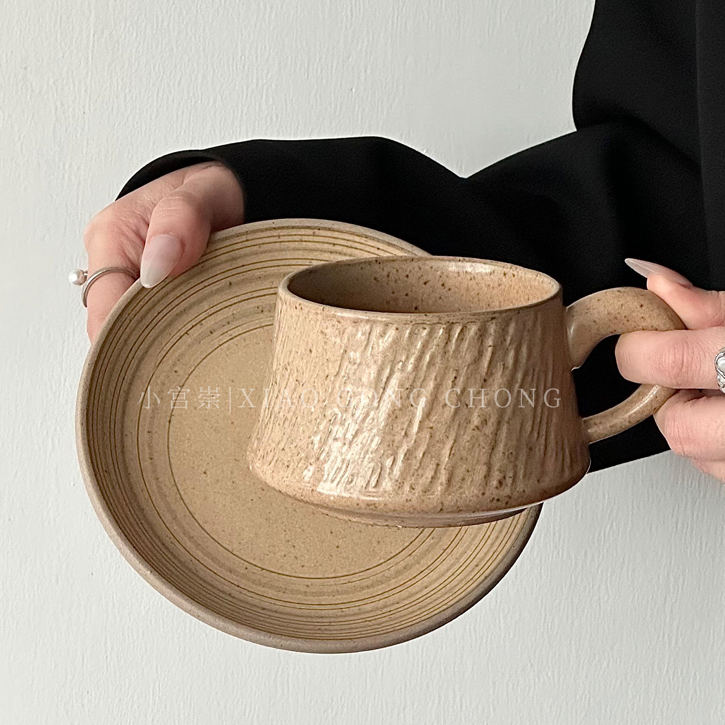 复古石纹陶瓷咖啡杯套装