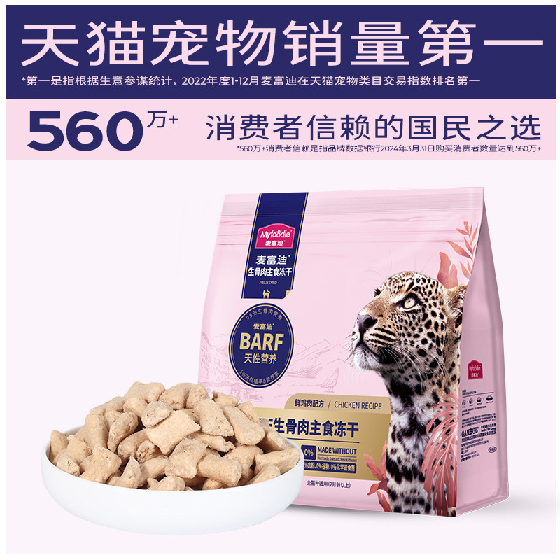 麦富迪barf霸弗生骨肉猫零食成幼乳鸽猫咪猫主食冻干鸡肉牛肉猫粮