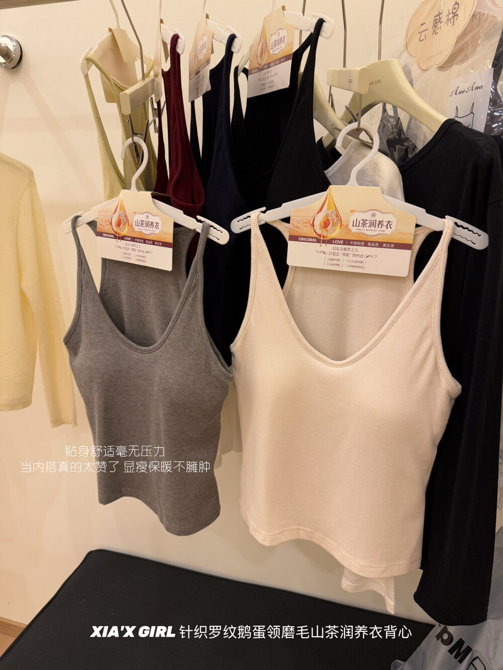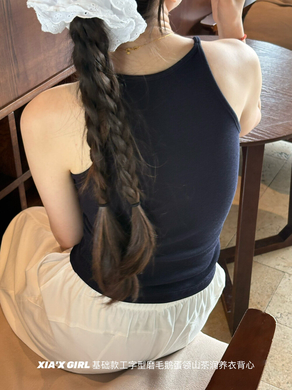 FULL OF CHARM 磨毛背心女带胸垫一体杯鹅蛋领工字背吊带美背打底