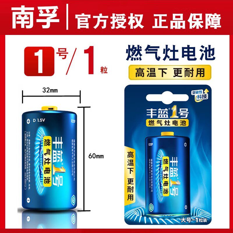 南孚丰蓝1号电池碳性一号大号燃气灶专用热水器煤气灶天然气灶R20p正品D型1.5v液化灶手电筒干电池南浮5号