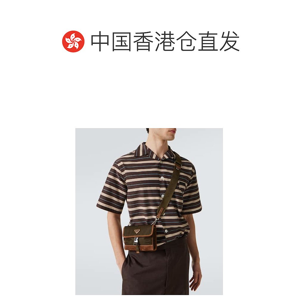 香港直邮Prada 普拉达 男士 Re-Nylon 山羊皮边邮差包