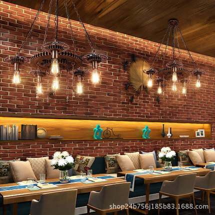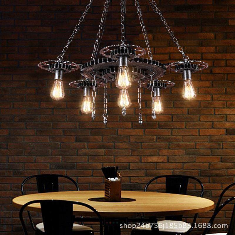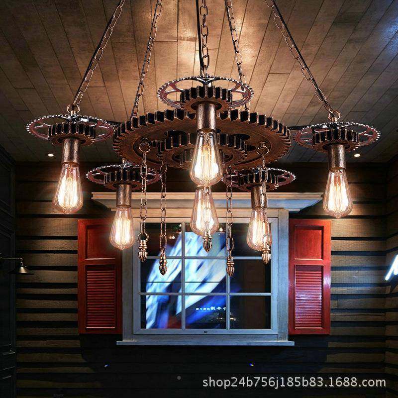 饭复酒古工业风齿轮吊灯吧店美发理发创店446怀旧意装饰个性店铺