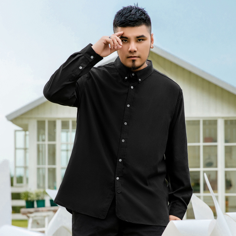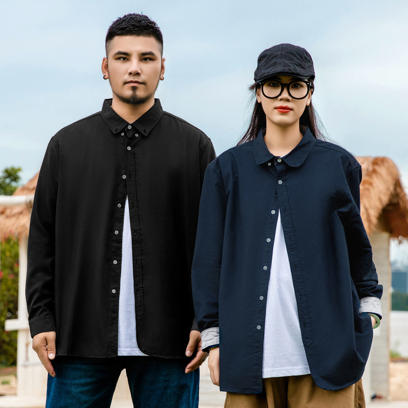 胖胖星球潮牌男装秋季宽松加肥加大情侣款牛津纺简约风长袖衬衫
