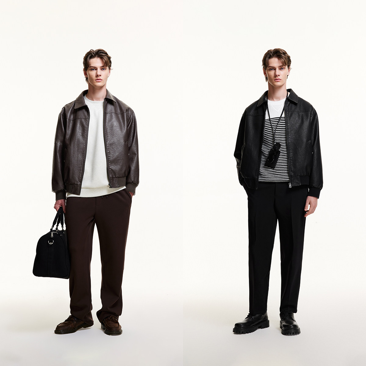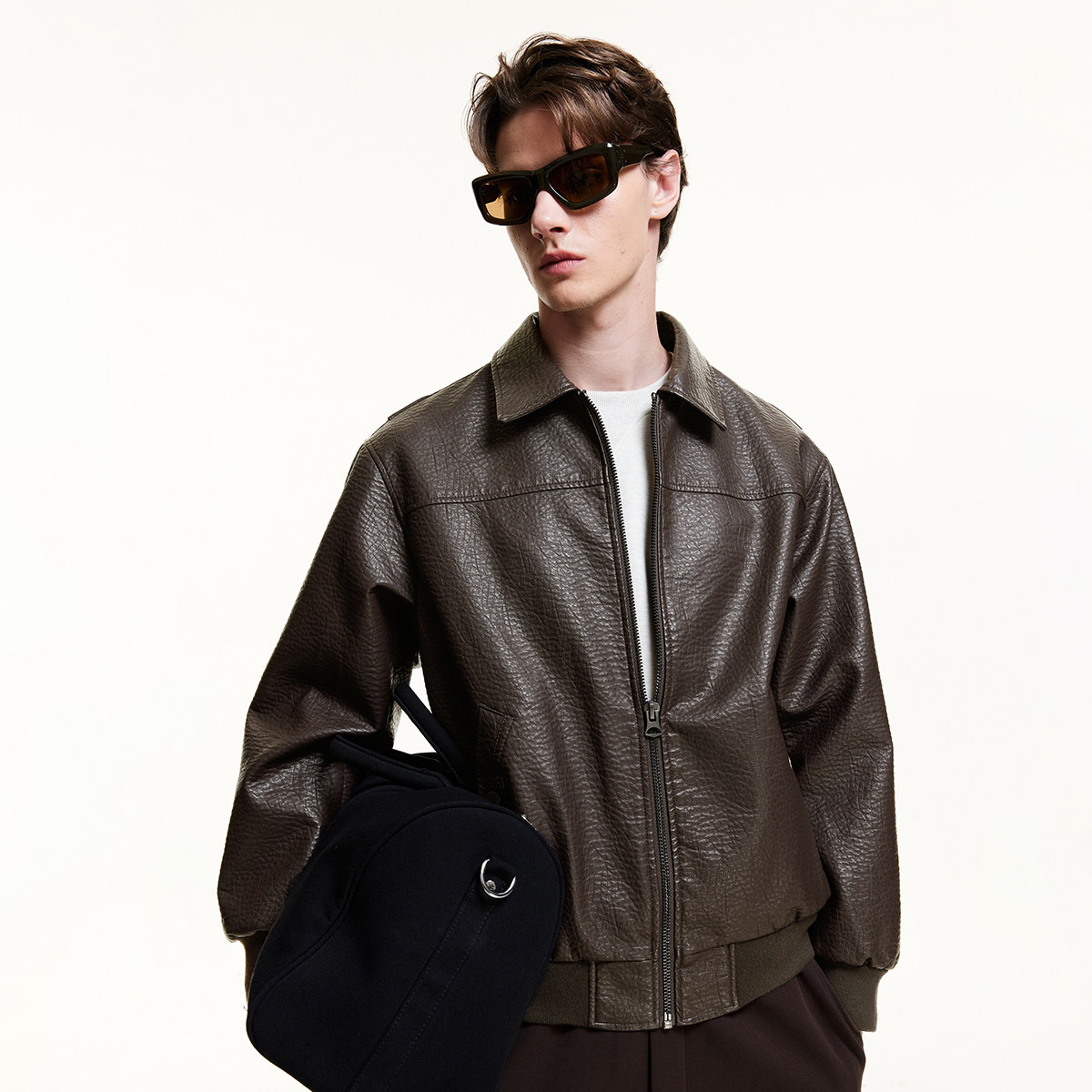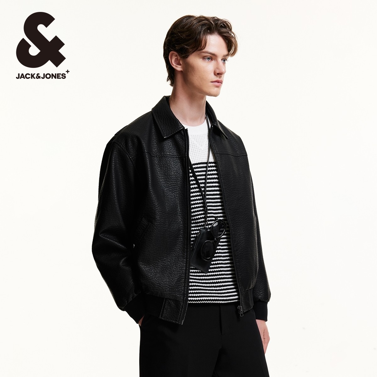 杰克琼斯男装 外套春季新款百搭舒适插袋皮牌装饰翻领夹克男款