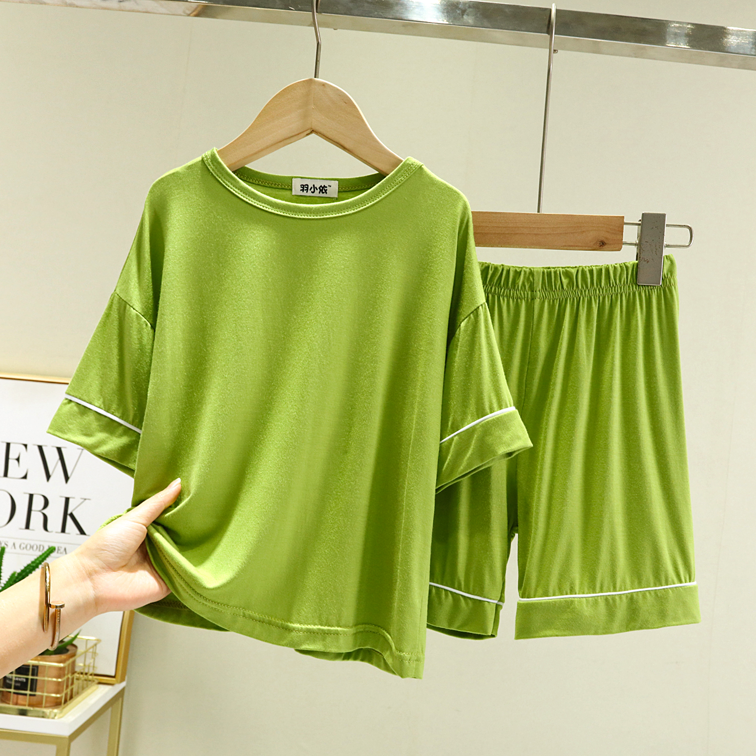 儿童莫代尔短袖套装夏季大中童宽松短裤男女童薄款居家睡衣两件套