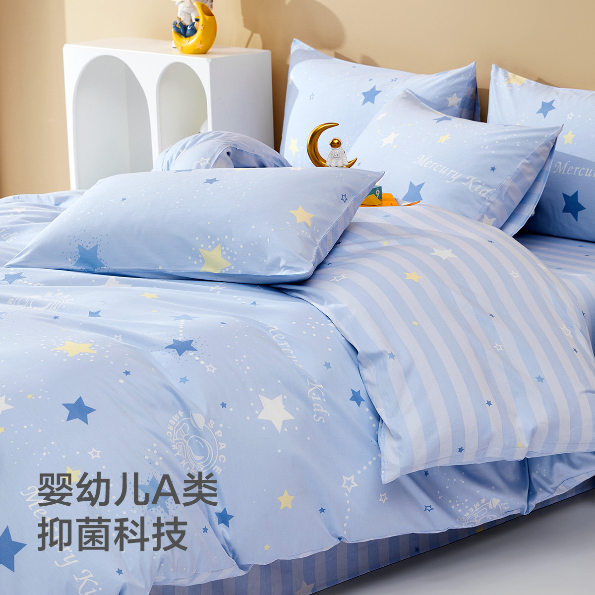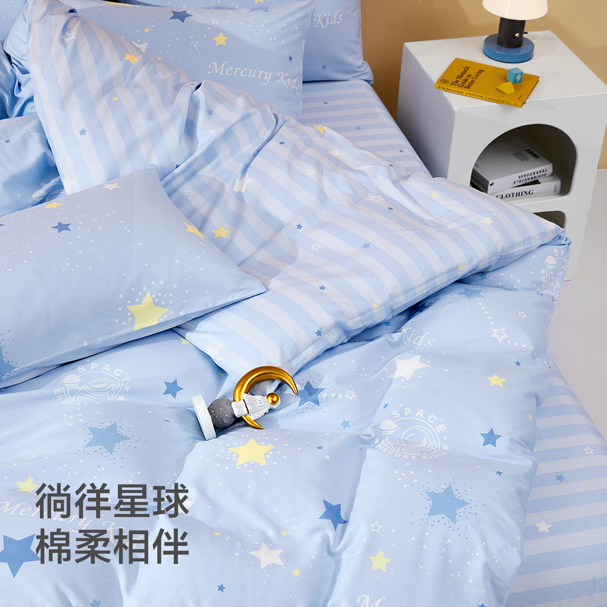 水星家纺全棉三/四件套A类套件儿童卡通学生宿舍纯棉床单被套床品
