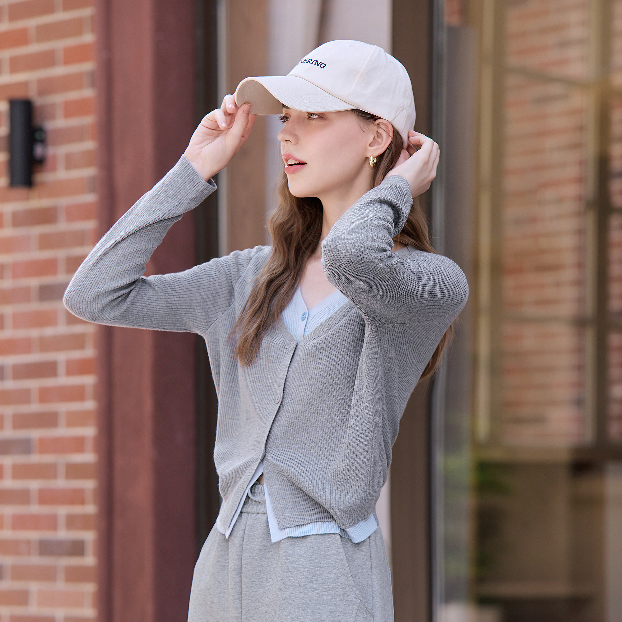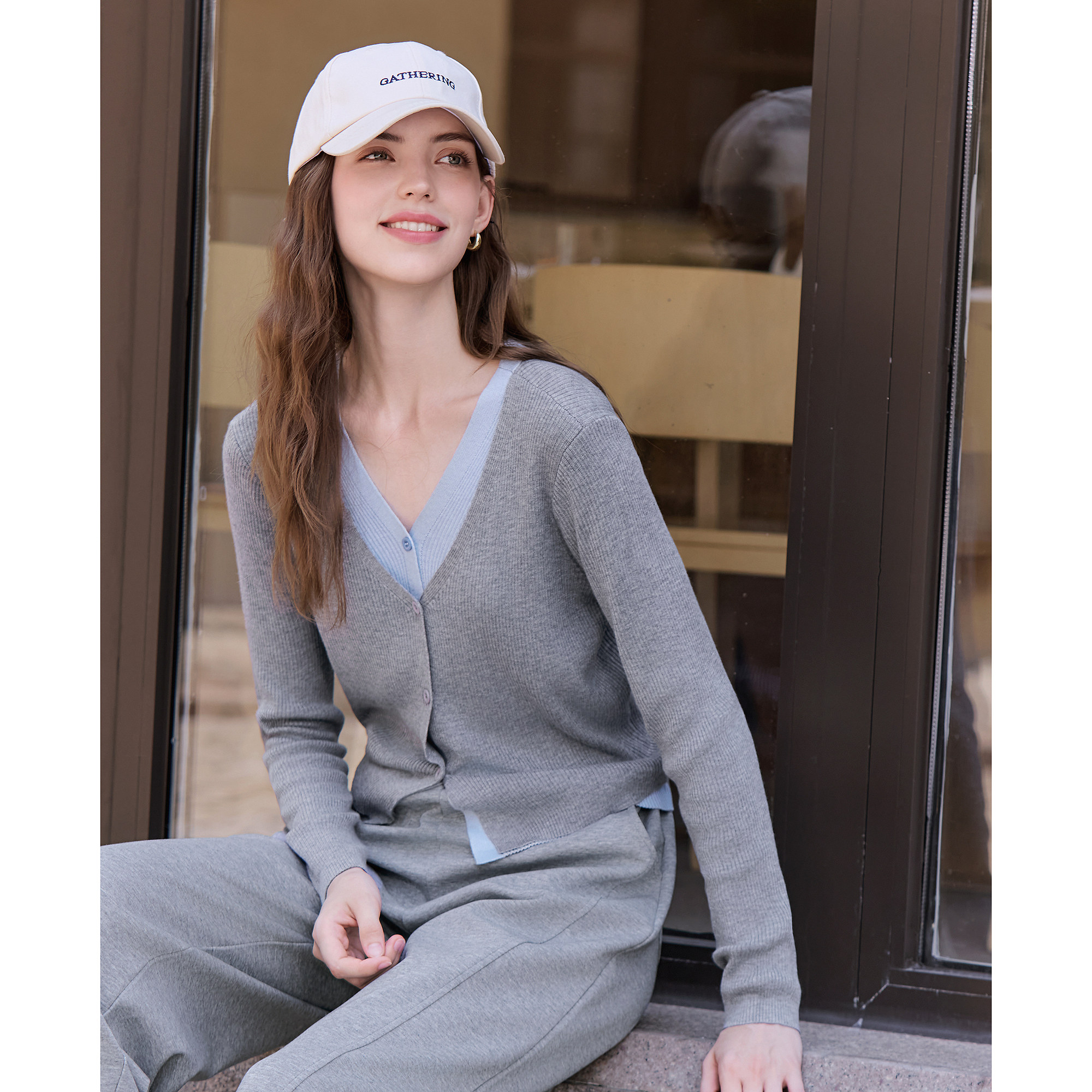 betu百图撞色假两件套头针织衫女2025年秋季新款短款小个子毛衫