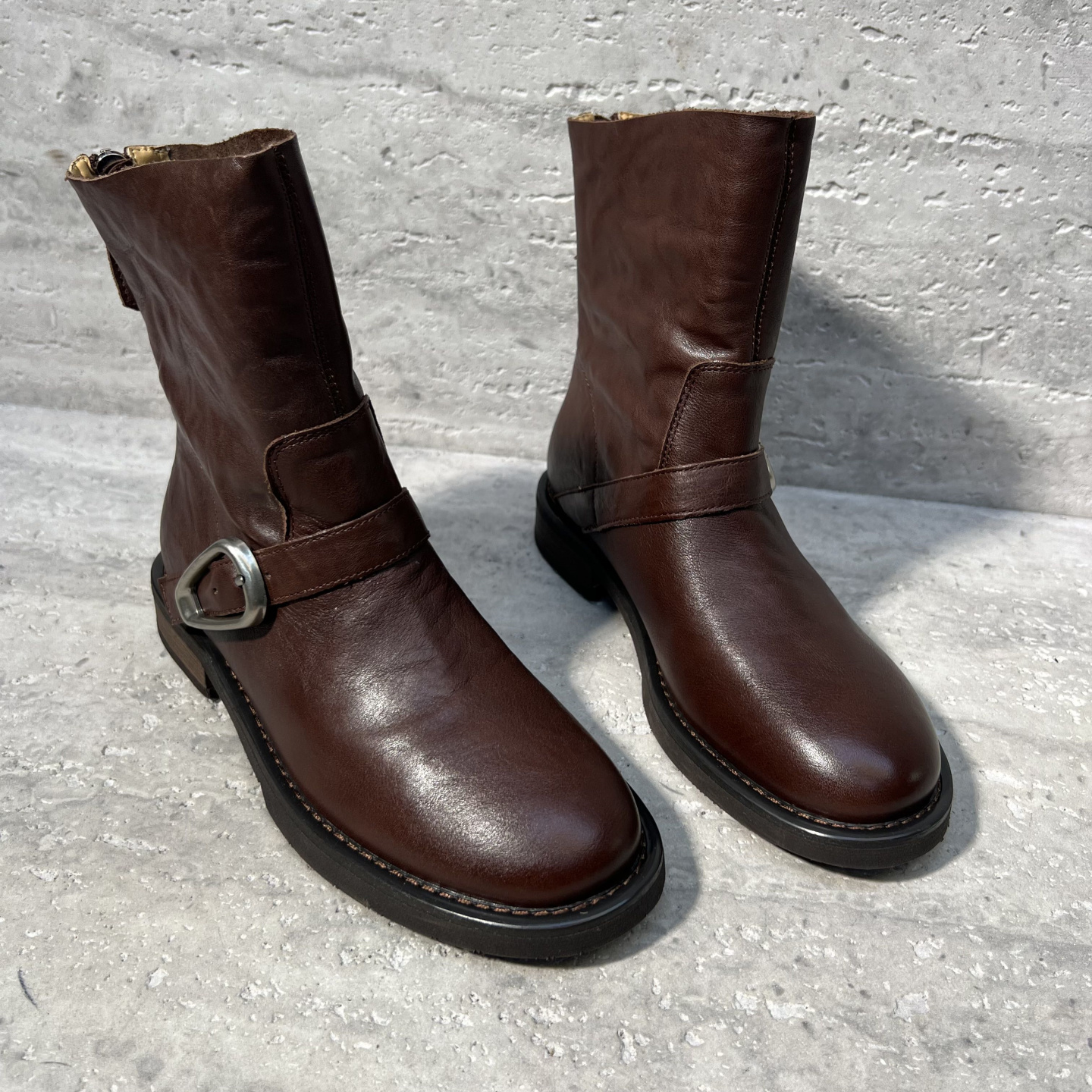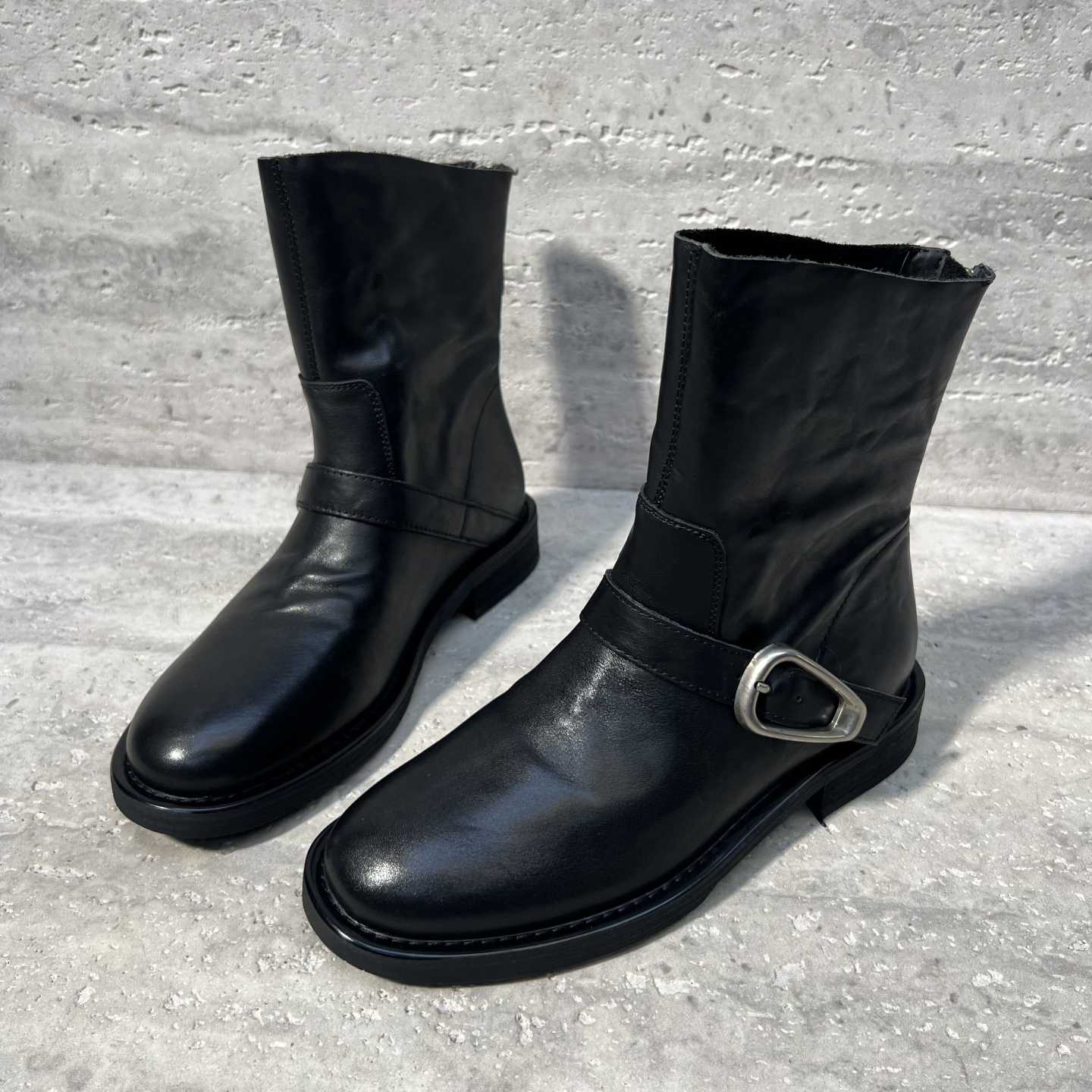 欧洲站女鞋2025秋季新欧货真皮粗跟后拉链皮带扣英伦风马丁靴短靴