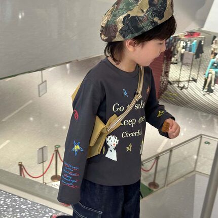 儿童洋气卡通印花纯棉长袖t恤秋季新款男女童时髦百搭打底衫上衣