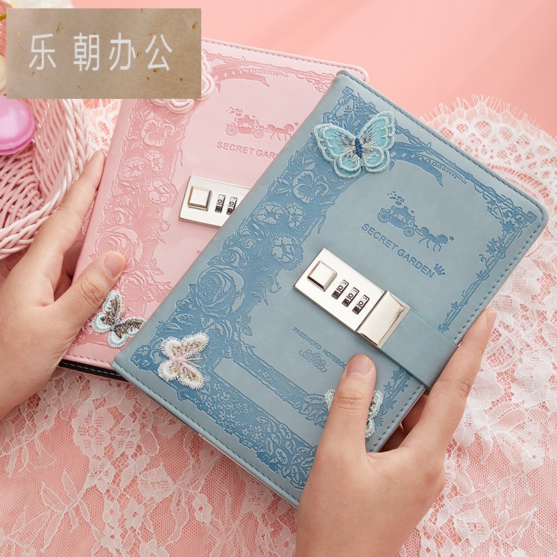 复古密码本带锁日记本创意十二星座内页手帐密码笔记本本子多功能记事本小学生网红文艺田字方字格文具儿童本