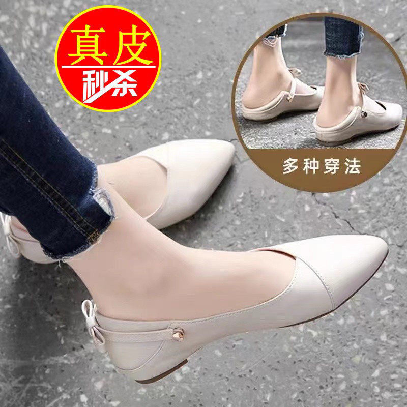 品牌特价真皮软底单鞋女平底凉鞋2025春秋新款女鞋浅口低跟小皮鞋