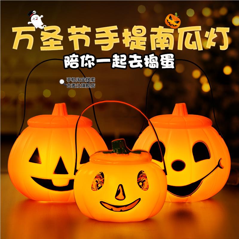 万圣节南瓜灯儿童玩具灯笼糖果罐手提篮子盒子讨糖袋道具桶装饰品