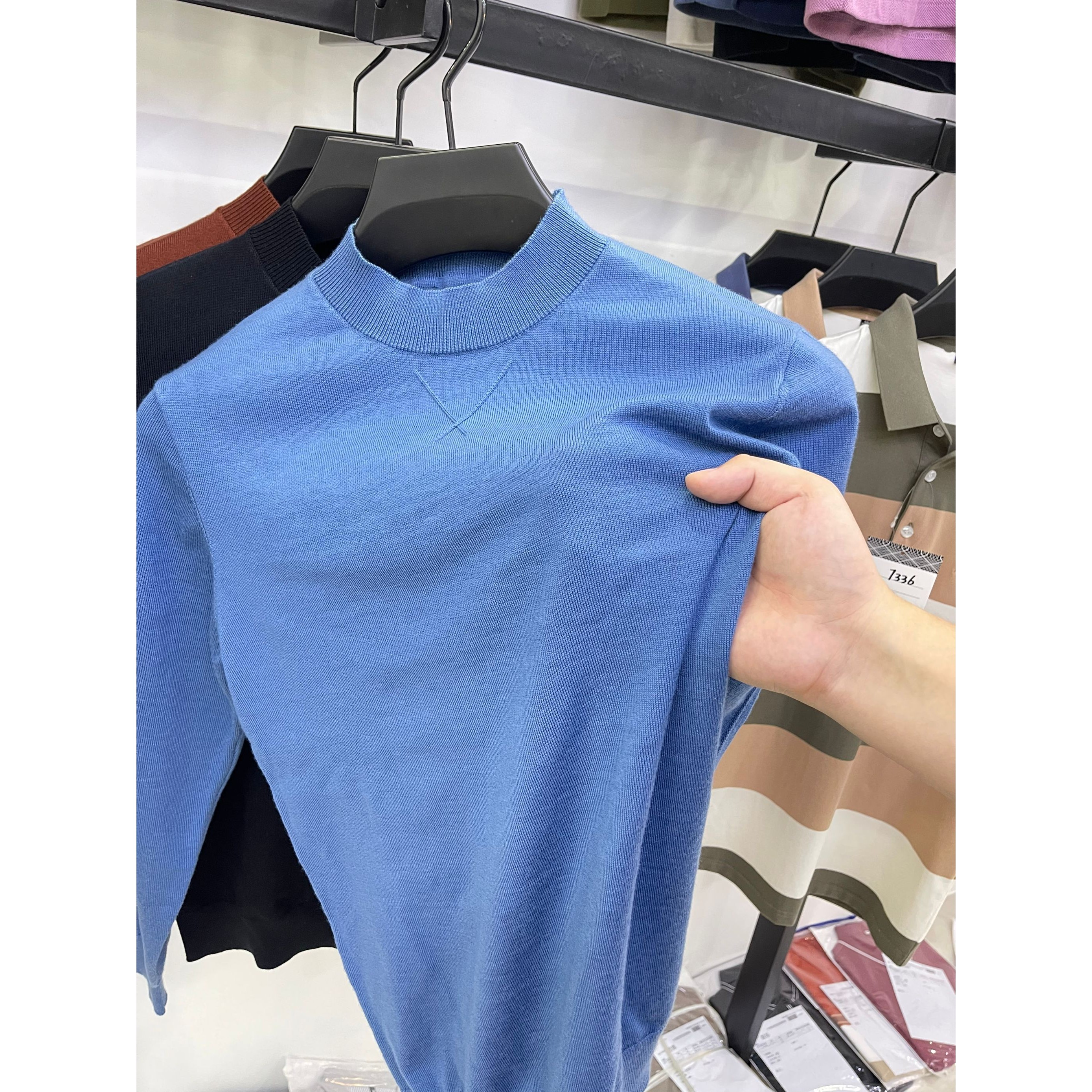 纯羊毛衫男半高领精纺针织衫2023秋冬上衣男士毛衣韩版内搭打底衫