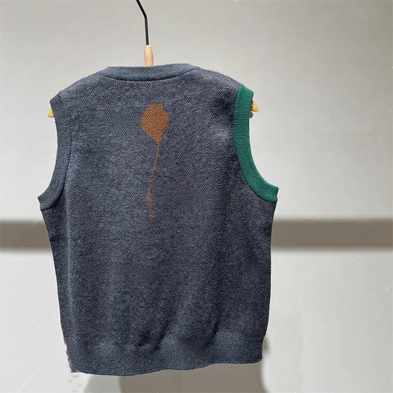 童装定制秋新款男女时尚无袖背心马甲潮流满印提花宽松休闲针织衫