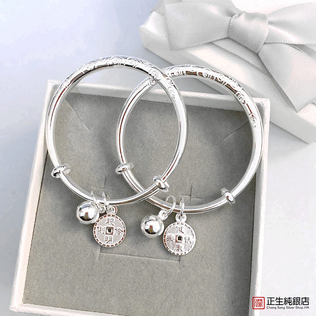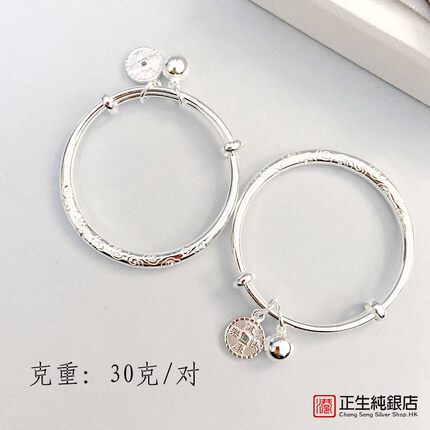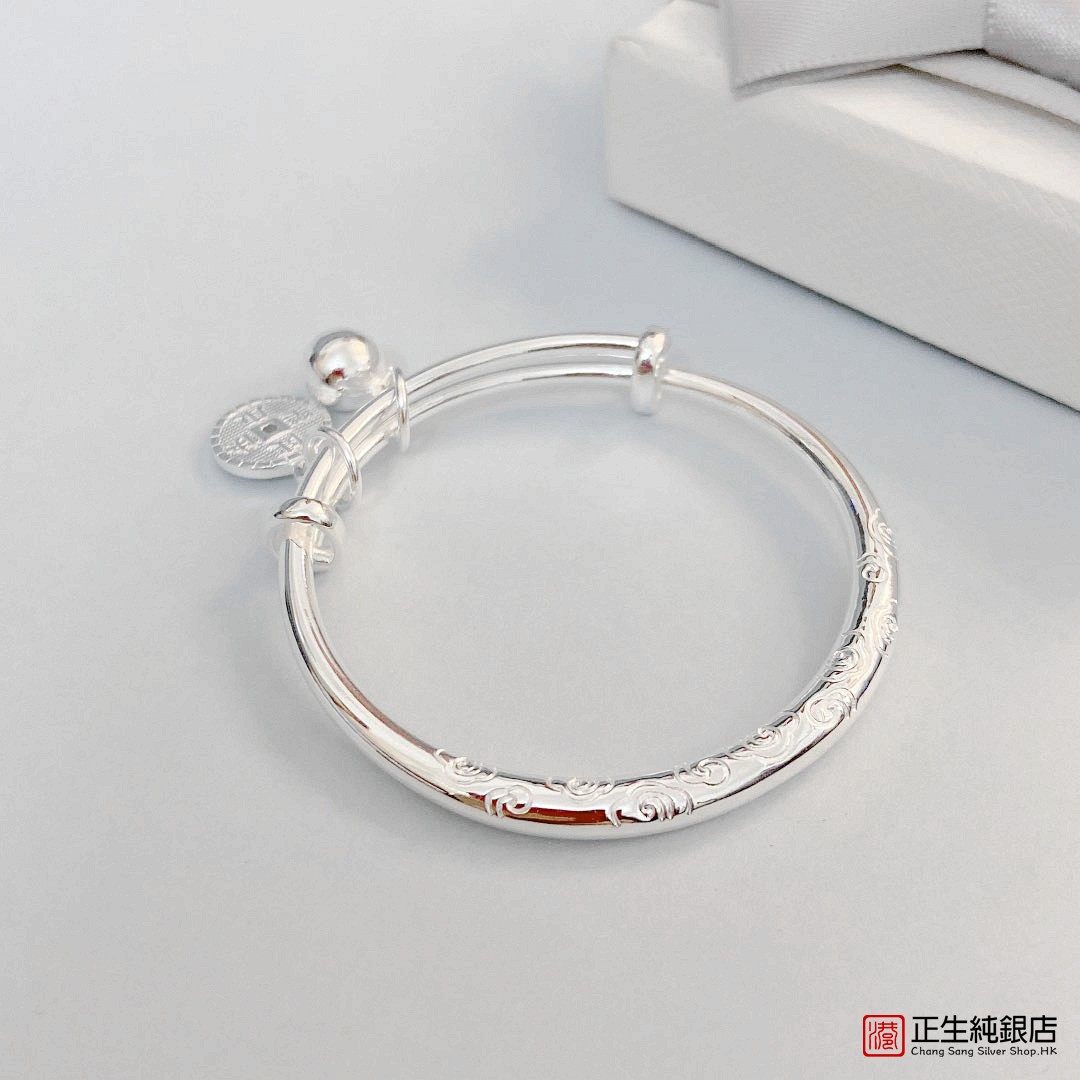 正生银饰祥云宝宝银手镯999足银实心推拉手环男女婴儿满月周岁礼