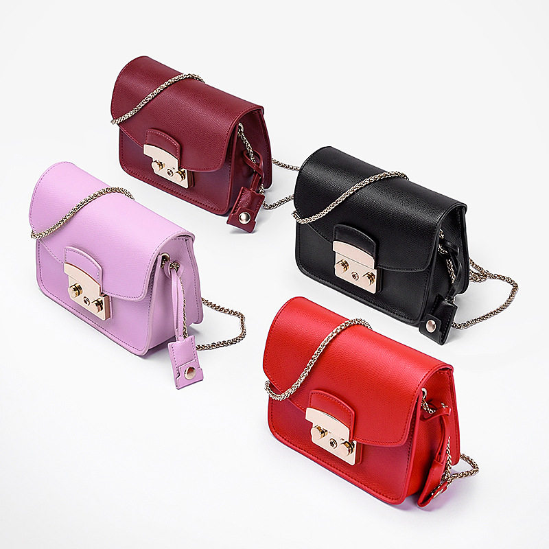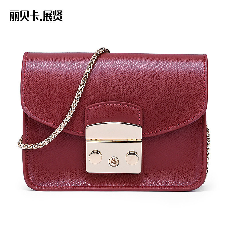 2025欧美时尚女包头层牛皮单肩斜跨链条小方包真皮包