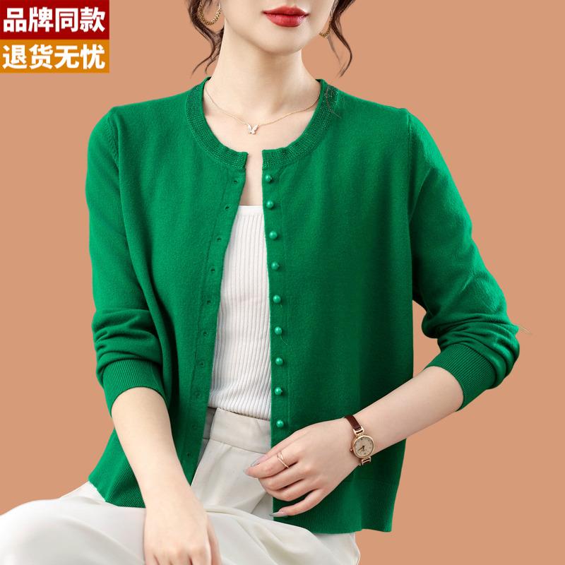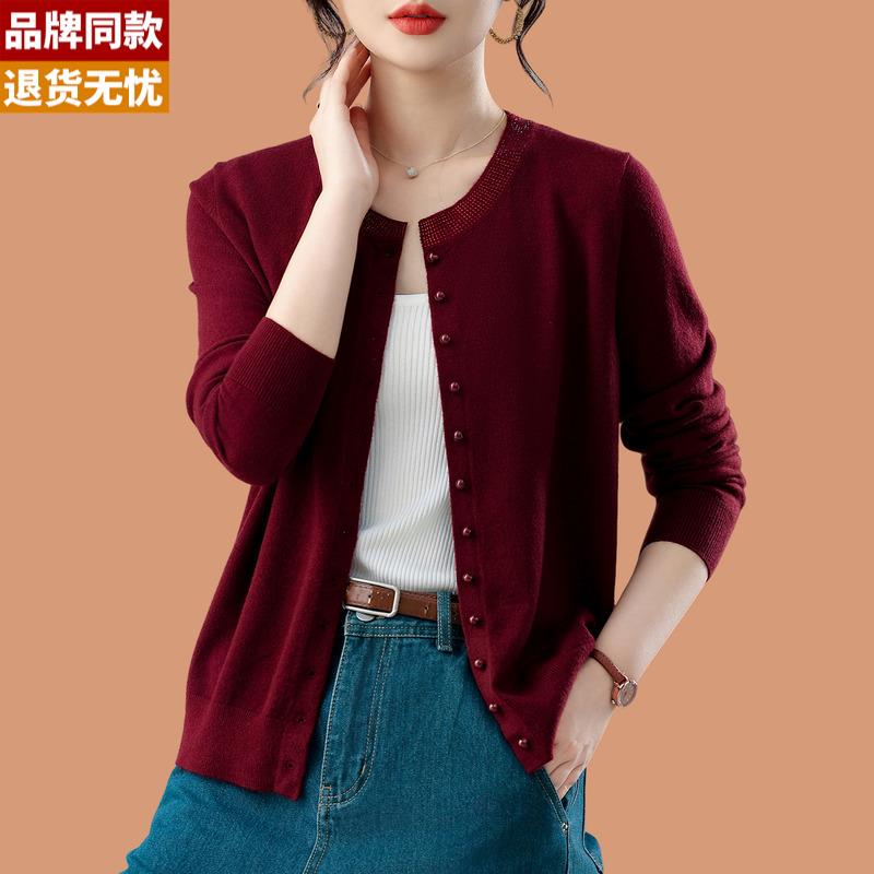 带钻羊毛针织开衫女2025新款秋季薄款小个子外搭披肩短款毛衣外套