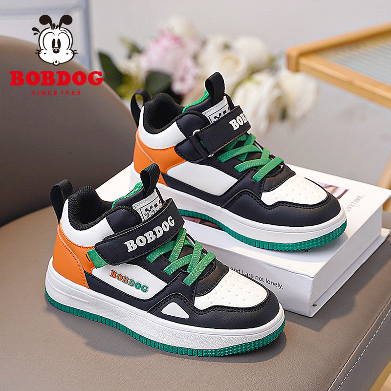 巴布豆童鞋男童板鞋2025春秋新款儿童鞋子皮面防水潮牌男孩运动鞋