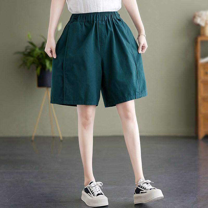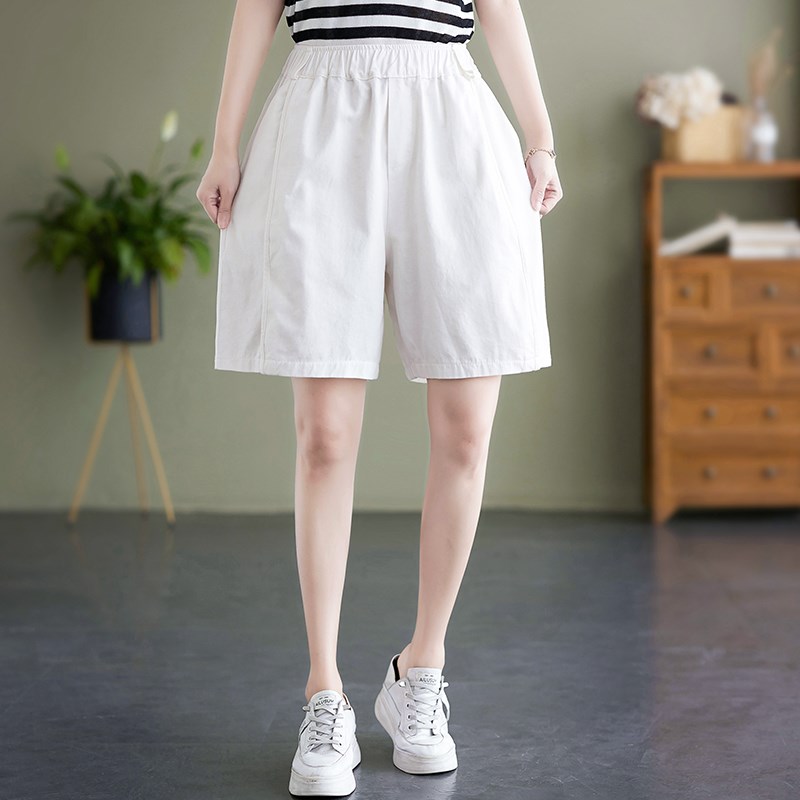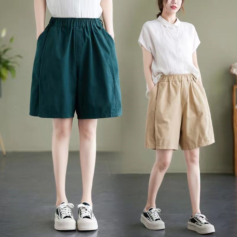 极速棉质休闲g五分裤女夏季宽松百搭拼接阔腿短裤松紧腰显瘦直筒