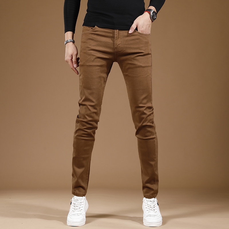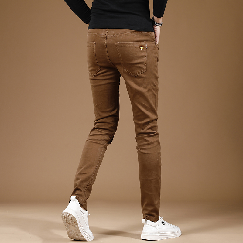 2025新款棕色裤子男休闲裤潮牌高端弹力牛仔裤男修身小脚男士长裤