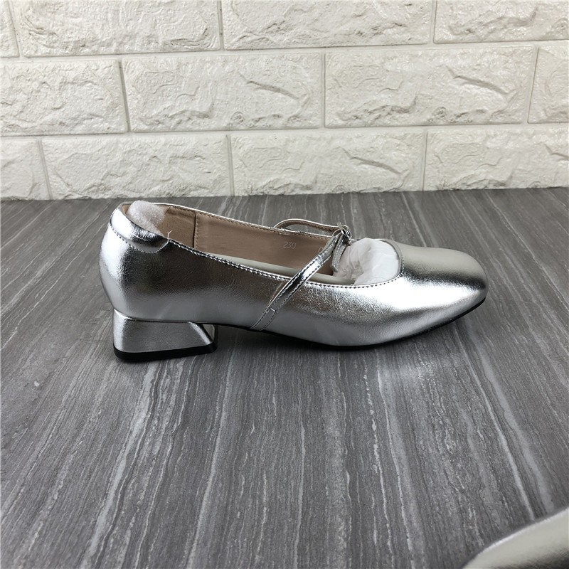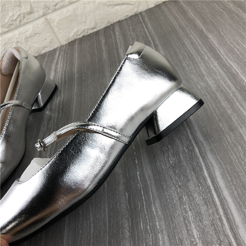 断码处理新款真皮浅口低跟银色时尚单鞋休闲女鞋浅口玛丽珍鞋百搭