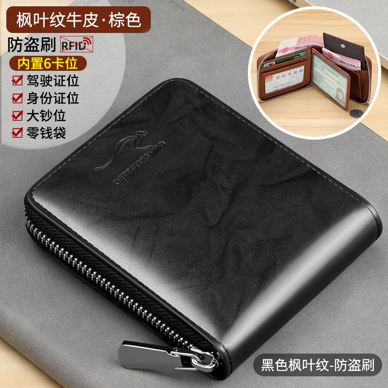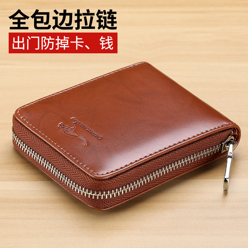 新款牛皮钱包男士钱包真皮短款拉链钱夹多功能驾驶证卡包竖款皮夹