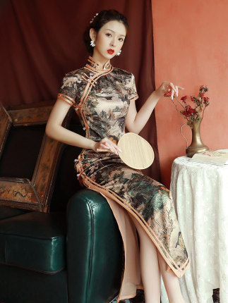 老上海滩旗袍长款蚀骨改良版复古民国风年轻款优雅日常可穿连衣裙