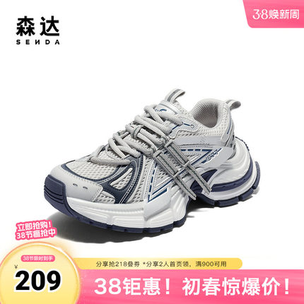 森达老爹鞋女款夏新商场同款运动厚底网面休闲鞋XPV01BM5