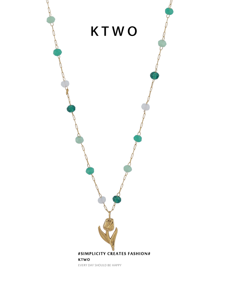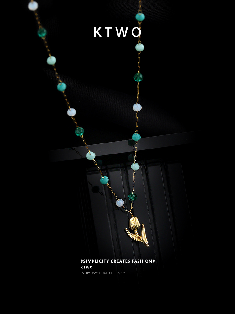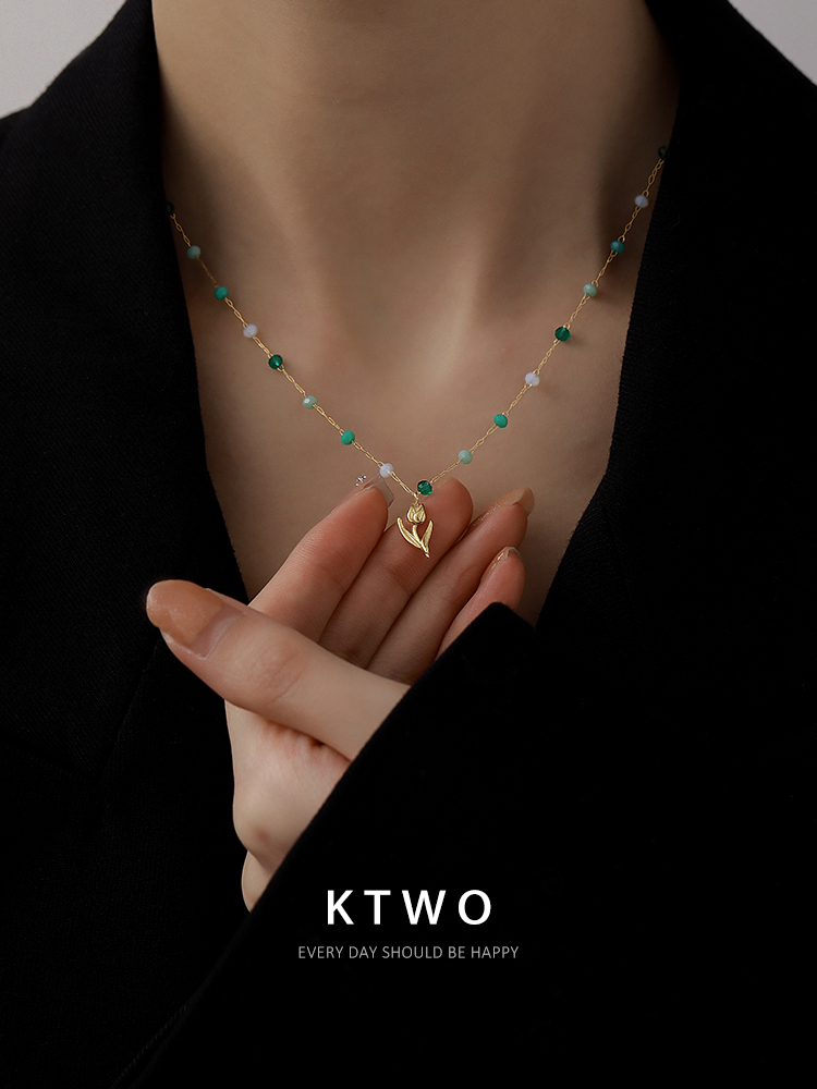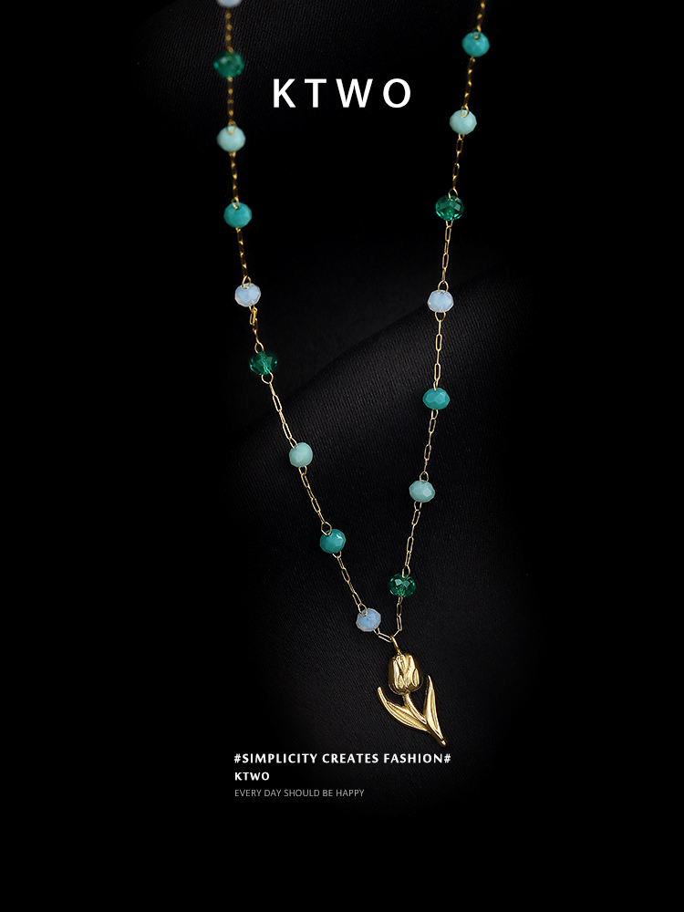 欧美轻奢郁金香吊坠项链女小众设计仿水晶彩色圆珠轻奢高级锁骨链