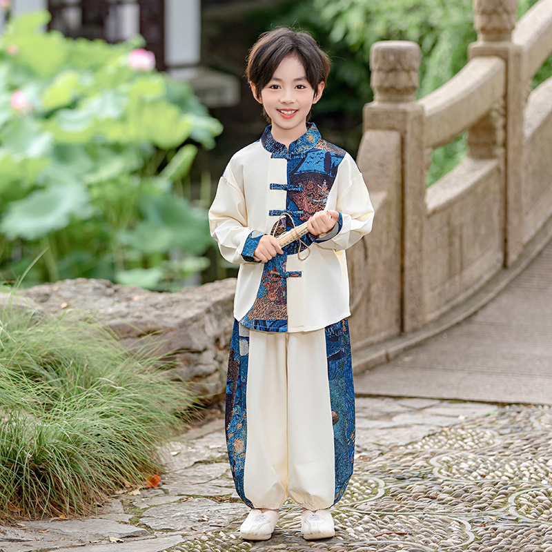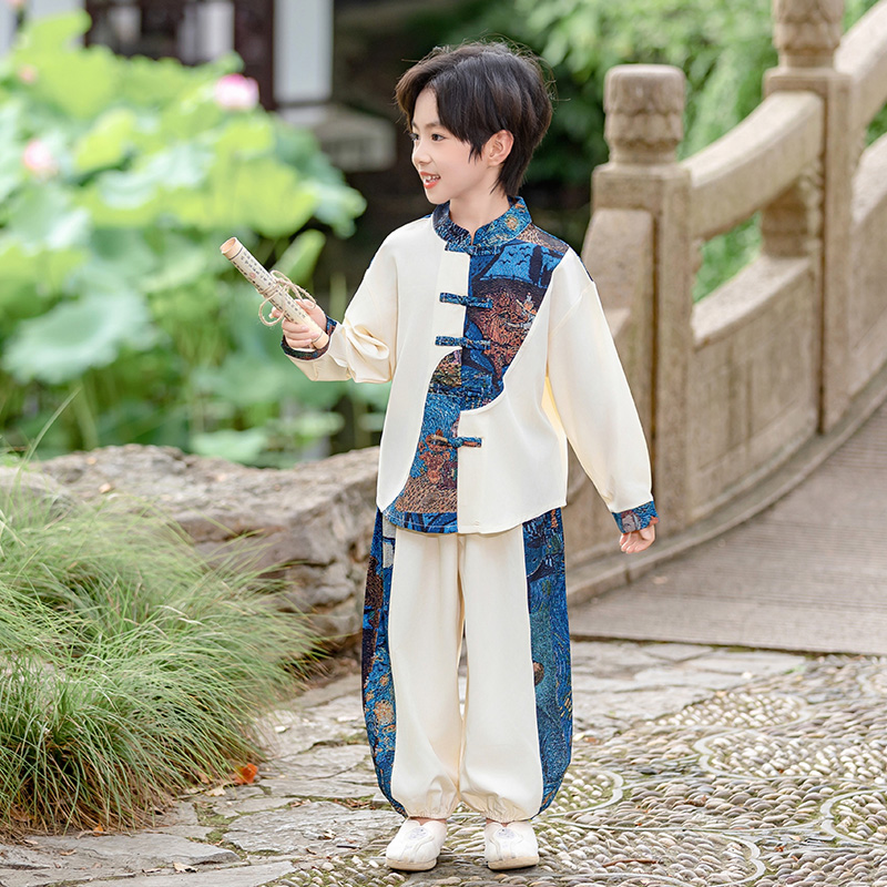 汉服国庆男童古风帅气新中式国风春秋套装新款儿童古装国学表演服