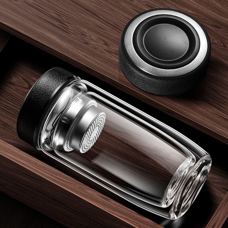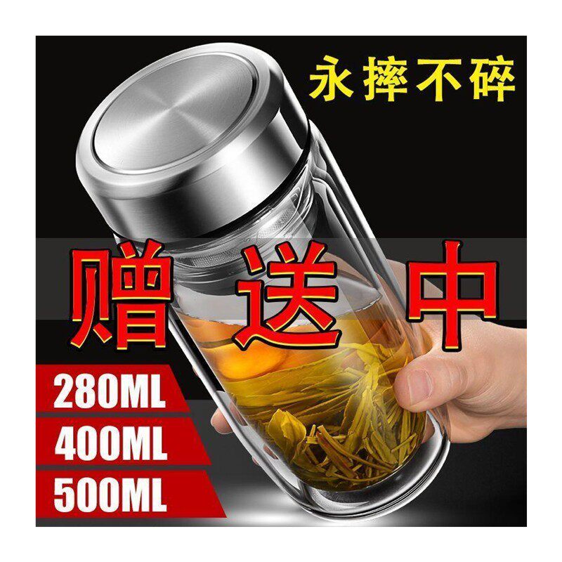 摔钢化玻璃杯茶叶杯子的隔热保温水杯双层鹅蛋杯男士茶杯防