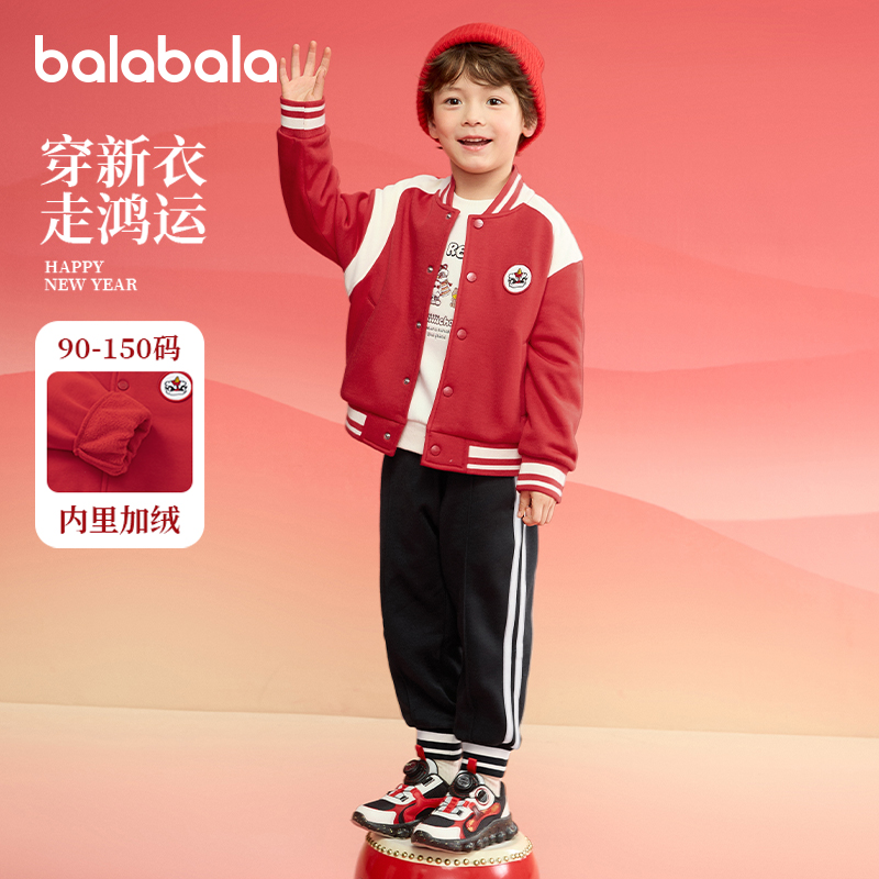 巴拉巴拉男童长袖套装儿童棒球服加绒外套秋装2025新款两件套童装