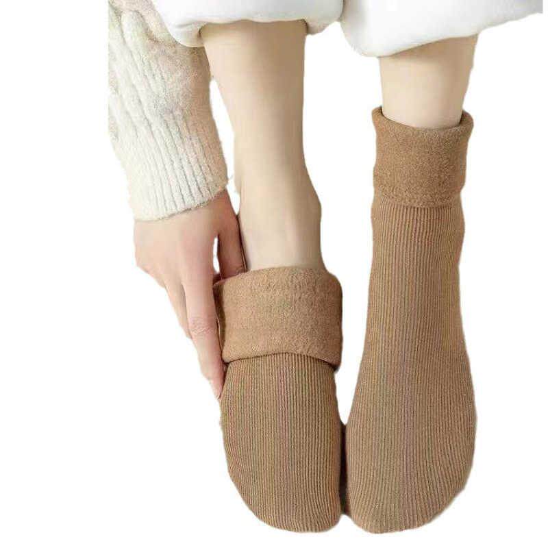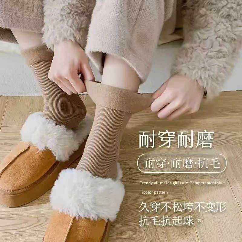 冬季厚袜子女加绒保暖中筒袜冬天保暖羊绒袜日系睡眠雪地袜毛圈袜