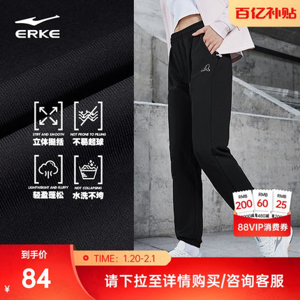 鸿星尔克运动裤女秋季新款黑色休闲卫裤女款针织长裤透气跑步裤子