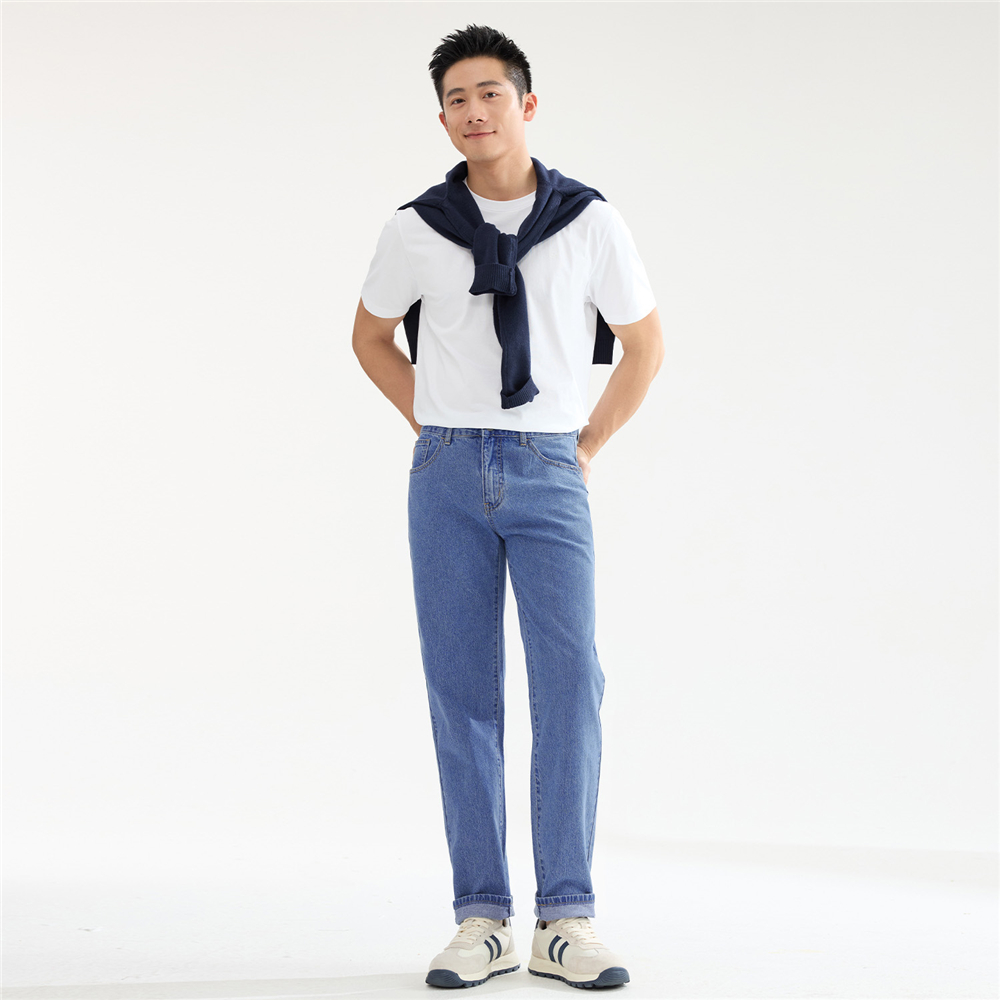 佐丹奴裤子男装洗水破骨口袋中腰牛仔长裤 01114688