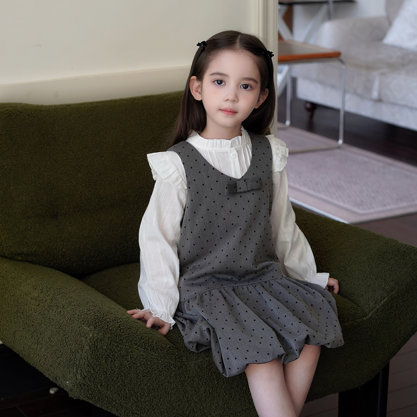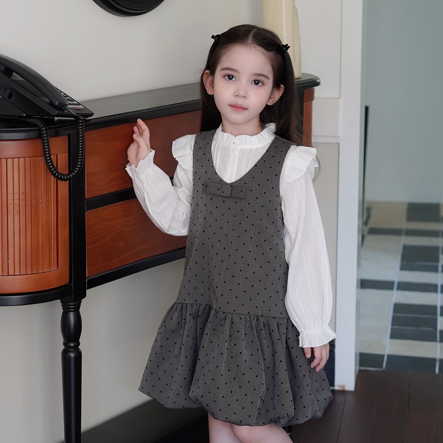 女童小香风连衣裙2025秋装新款女宝宝洋气Miu系波点背心裙公主裙