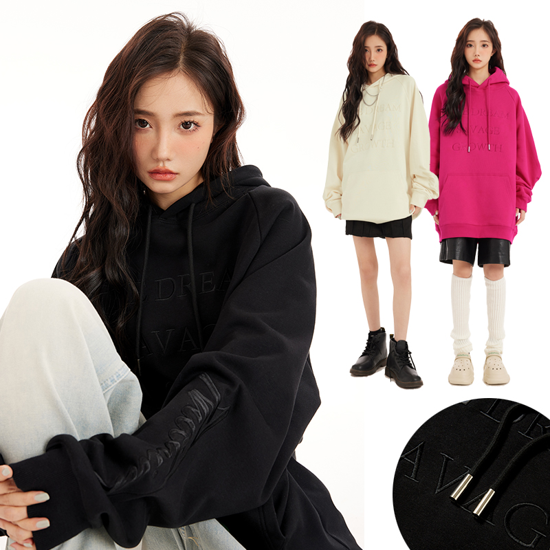 国潮字母刺绣玫红色卫衣连帽潮牌男女oversize情侣外套2025秋新款
